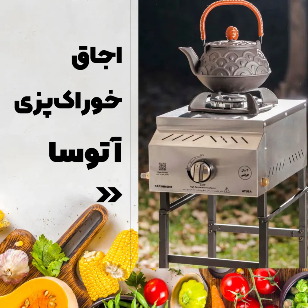 اجاق خوراک پزی آتوسا یک اجاق گاز کوچک، سبک و بسیار کاربردی است که میتواند جایگزین مناسبی برای اجاقهای پلوپز قدیمی گردد. این اجاق بسیار زیبا، انتخاب افراد مشکل پسندی است که علاوه بر کاربرد محصول به زیبایی آن نیز توجه دارند. این محصول در کنار کبابپز گازی استیل آتش مهر به خوبی ترکیب می گردد و یک کباب پز اجاق دار کامل را ارائه دهد.